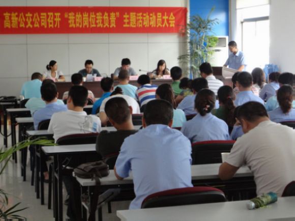 為積極響應集團黨委關(guān)于開(kāi)展“我的崗位我負責”主題實(shí)踐活動(dòng)的實(shí)施意見(jiàn)的要求,7月21日,高新公交公司召開(kāi)了“我的崗位我負責”為主題的實(shí)踐活動(dòng)動(dòng)員大會(huì ),會(huì )上宣讀并下發(fā)了公司關(guān)于開(kāi)展活動(dòng)的相關(guān)文件,公司各部門(mén)領(lǐng)導也就此次活動(dòng)的精神做了重要講話(huà),全體員工參加了會(huì )議。