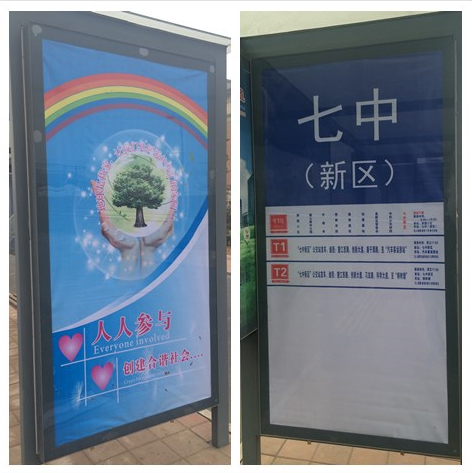 高新公交非常重視,立即就畫(huà)面破損量進(jìn)行了統計并及時(shí)記錄,迅速聯(lián)系相關(guān)公司開(kāi)展站牌更新工作。并就此次站牌更新的畫(huà)面進(jìn)行了多次篩選最終選擇以中國夢(mèng)及文明創(chuàng )建為載體的公益廣告畫(huà)面,結合新設計的站點(diǎn)信息畫(huà)面。讓七中校區公交站臺煥然一新。成為一面宣傳的旗幟。