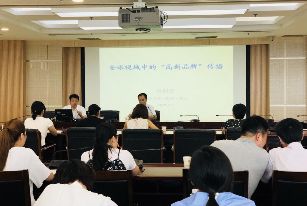 此次講座主講人為許根宏,現任安徽日報報業(yè)集團合肥辦事處主任兼安徽日報合肥記者站站長(cháng)。許站長(cháng)以“全球視域中的‘高新品牌’的傳播”為主題開(kāi)始了此次講座,首先他先給大家看了三則信息,并逐一對信息進(jìn)行的分析解說(shuō)。隨后許站長(cháng)對“世界一流”賦予高新品牌新內涵,高新品牌傳播的功能、戰略、實(shí)施等,進(jìn)行詳細介紹,其中對高新品牌傳播控制中的網(wǎng)絡(luò )輿情應對措施做了詳細,并著(zhù)重介紹了網(wǎng)絡(luò )輿情的處置程序及實(shí)戰技巧。