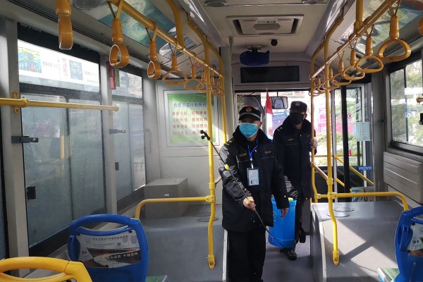 針對開(kāi)福寺停保場(chǎng)、皖水路停保場(chǎng)及柏堰科技園公交首末站內停放的全部公交車(chē),工作人員向公交車(chē)上噴灑消毒劑,重點(diǎn)針對車(chē)廂座椅、扶手、空調出風(fēng)口、投幣箱等設施設備上,做到徹底噴灑消毒,以免留下死角和盲區。部分公交線(xiàn)路恢復運營(yíng)后,在防疫和控制期間,高新公交公司也將增加車(chē)輛的消毒密度。同時(shí),要求在晴天時(shí)打開(kāi)車(chē)窗,在雨天時(shí)打開(kāi)前后車(chē)窗,以保持車(chē)內的持續通風(fēng)。