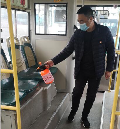 在公交車(chē)上,黨員志愿者們手拿消毒壺、口戴防護口罩,對進(jìn)站停放公交車(chē)輛進(jìn)行嚴格的消毒,并用84消毒液浸泡的抹布對車(chē)內乘客比較容易接觸的座位、扶手、拉桿、刷卡機、票箱口等部位進(jìn)行擦拭,逐一消毒,確保防控不留死角。在辦公室里,他們佩戴防護口罩、手套,仔細清點(diǎn)、認真核對防疫物資數量,并分發(fā)到位。為奮戰在一線(xiàn)的公交車(chē)駕駛員、調度員好做后勤保障工作。