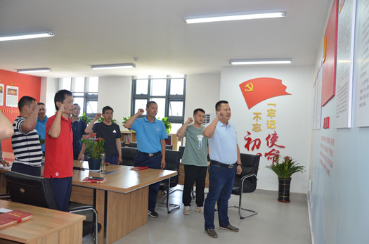 會(huì )后,在孔強同志的帶領(lǐng)下,全體黨員在莊嚴的黨旗下與新入黨的同志一起重溫了入黨誓詞。