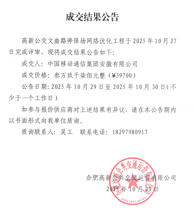 高新公交文曲路停保場(chǎng)網(wǎng)絡(luò )優(yōu)化工程項目成交結果公告
